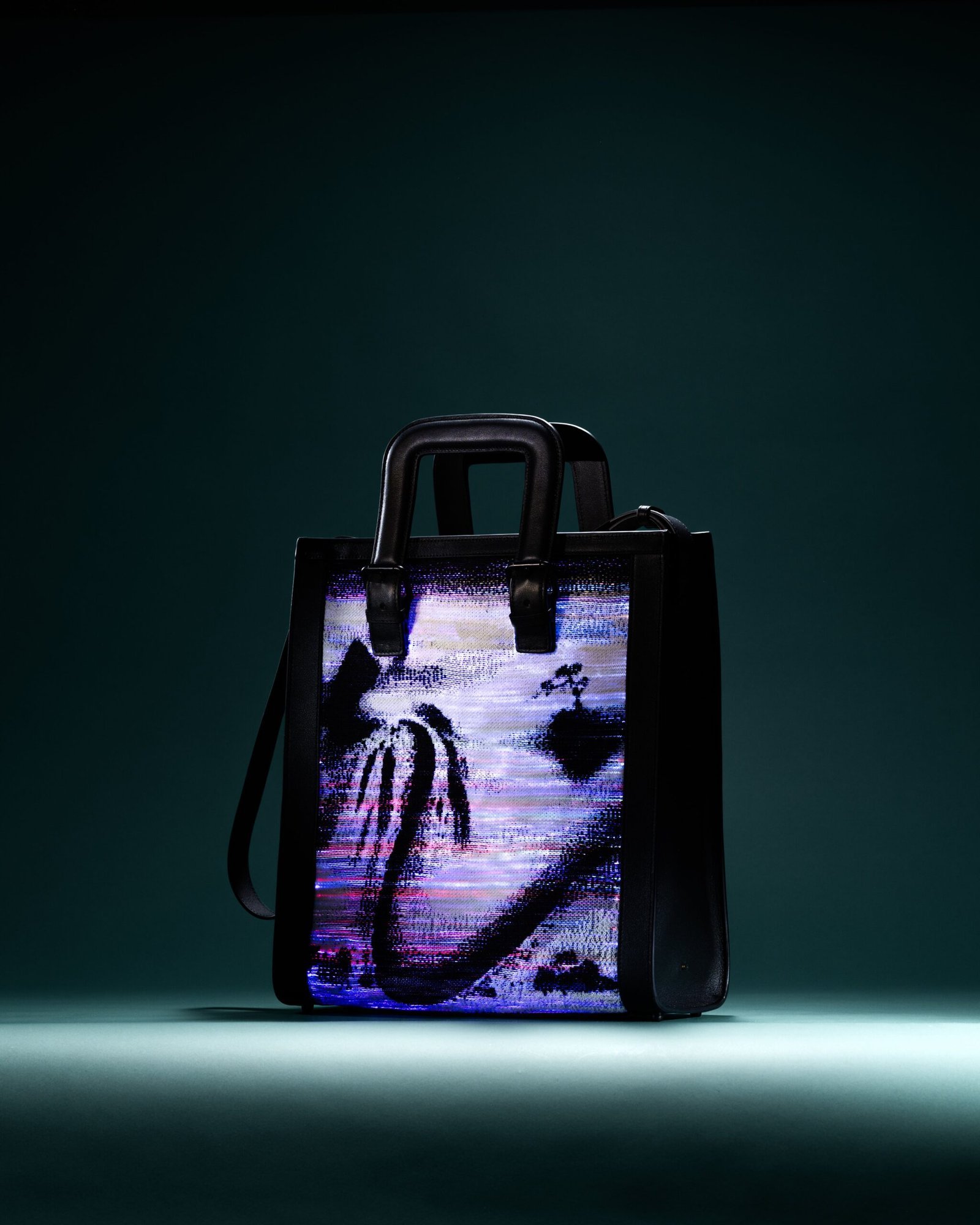 By integrating sound with imagery, “Chanting” allows visual art to resonate emotionally, much like music. Dr. Kan Tai Keung combines the mindset and character of a designer with the language of ink wash painting, using unique geometric landscapes to enhance this fashionable handbag, akin to the experience of reciting poetry and singing.